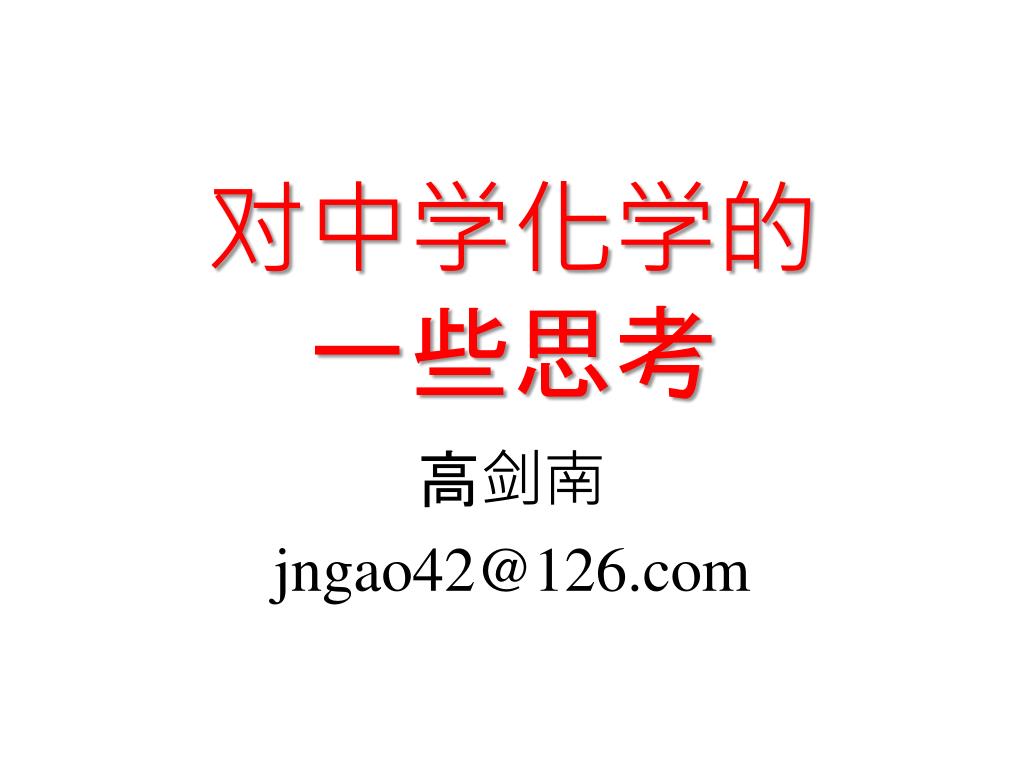 对中学化学的 一些思考. 高剑南 jngao42@126.com. 我是劳动者当中最幸运的人。医生是将生命带进世界的引导员,而我每天都可以看到生命的变化,看到一个个日臻成熟和美好的生命;建筑师可以匠心独运将一幢大厦耸立几个世纪而仍然巍峨壮观,而我用爱和真理所创造的却可以一代又一代地永久地传播下去。 ─ ﹙ 美 ﹚ 约翰 · 施拉特. 对中学化学的一些思考. Ⅰ . 化学的价值 Ⅱ. 基础教育的特点 Ⅲ . 关于 特色与亮点. 两个问题. 纵观自然科学的发展历史,化学从来都不是领头科学,也不是朝阳科学。化学究竟有没有价值?有没有魅力?有没有前途?