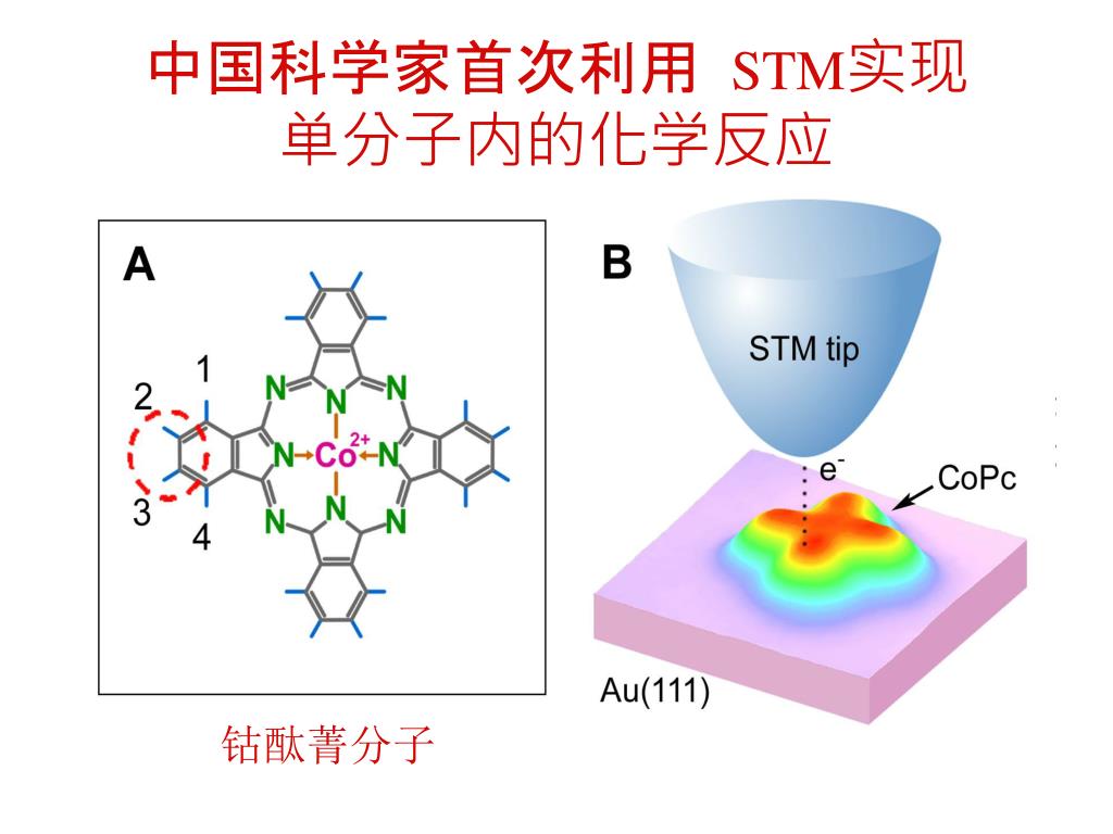 中国科学家首次利用 STM实现单分子内的化学反应 钴酞菁分子