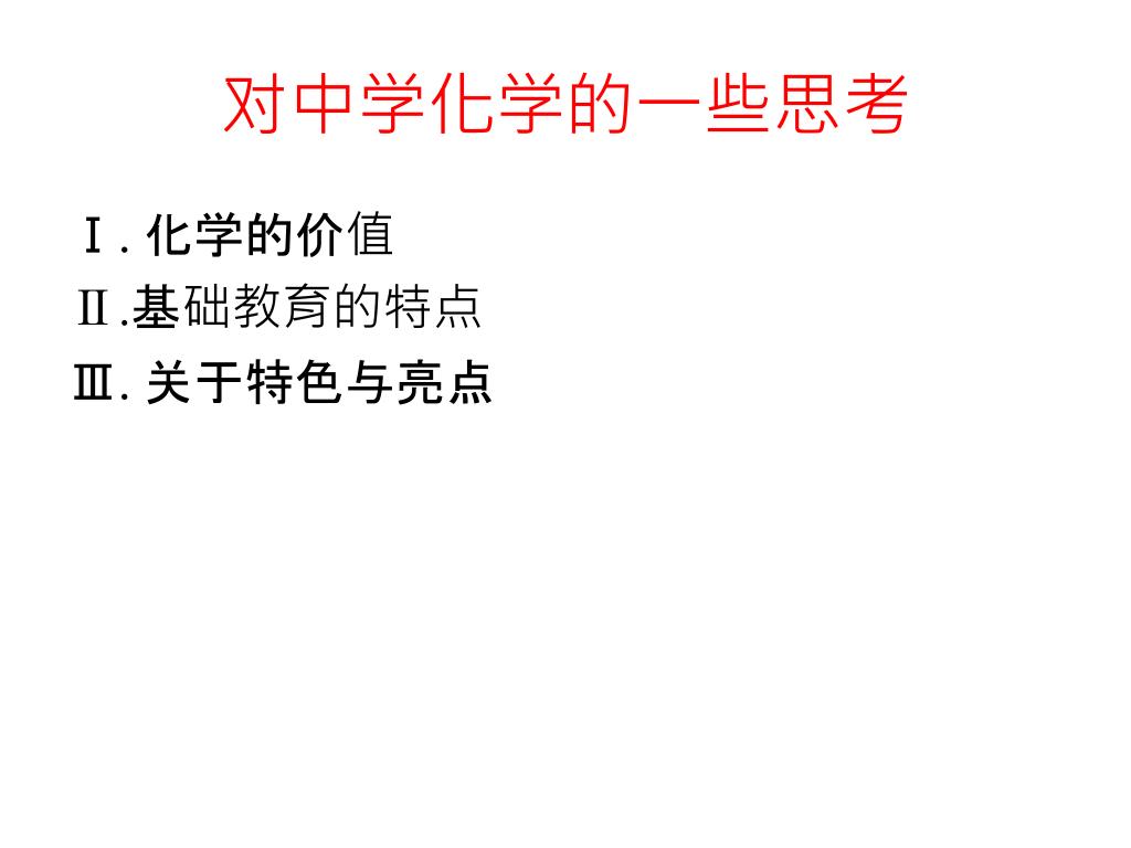 对中学化学的一些思考 Ⅰ.化学的价值 Ⅱ.基础教育的特点 Ⅲ.关于特色与亮点