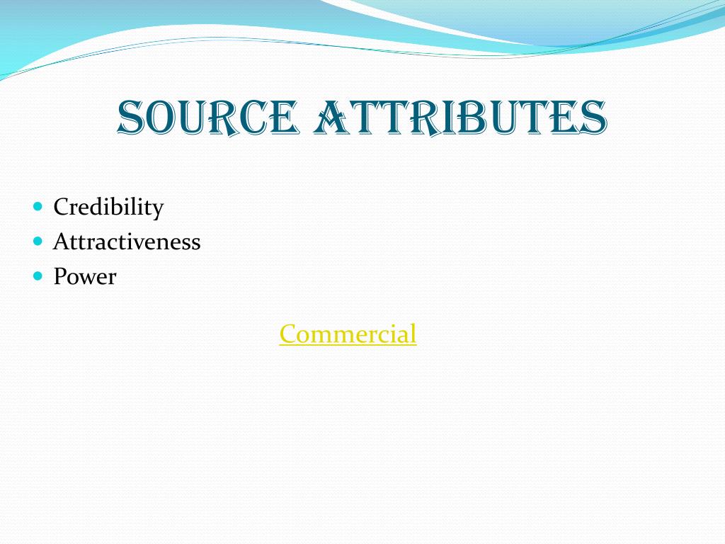 Source ATTRIBUTES • Credibility • Attractiveness • Power • Commercial