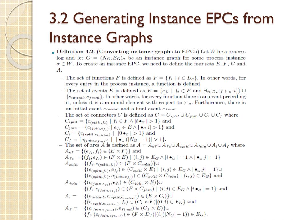 3.1 Instance Event-driven Process Chains (Instance EPCs) • Note: • An instance EPC doesn’t contain any connectors other than AND-split and AND-joins connectors • There is exactly one initial event and one final event