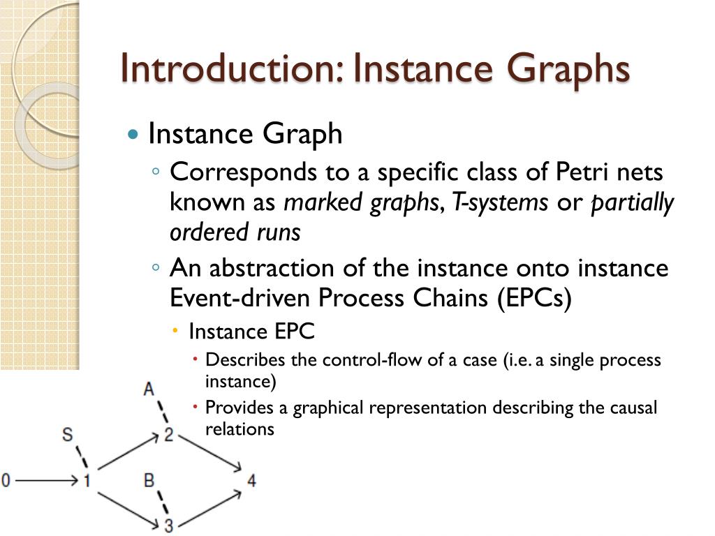 Multi-phase Process Mining: Building Instance Graphs. Jason Ree 3/31/11 School of Technology Management UNIST. Introduction: Instance Graphs. Instance Graph Corresponds to a specific class of Petri nets known as marked graphs , T-systems or partially ordered runs