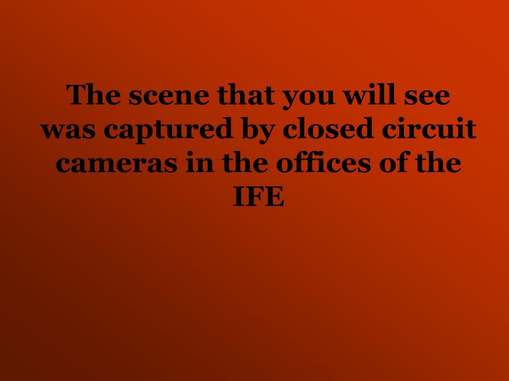 The scene that you will see was captured by closed circuit cameras in the offices of the IFE