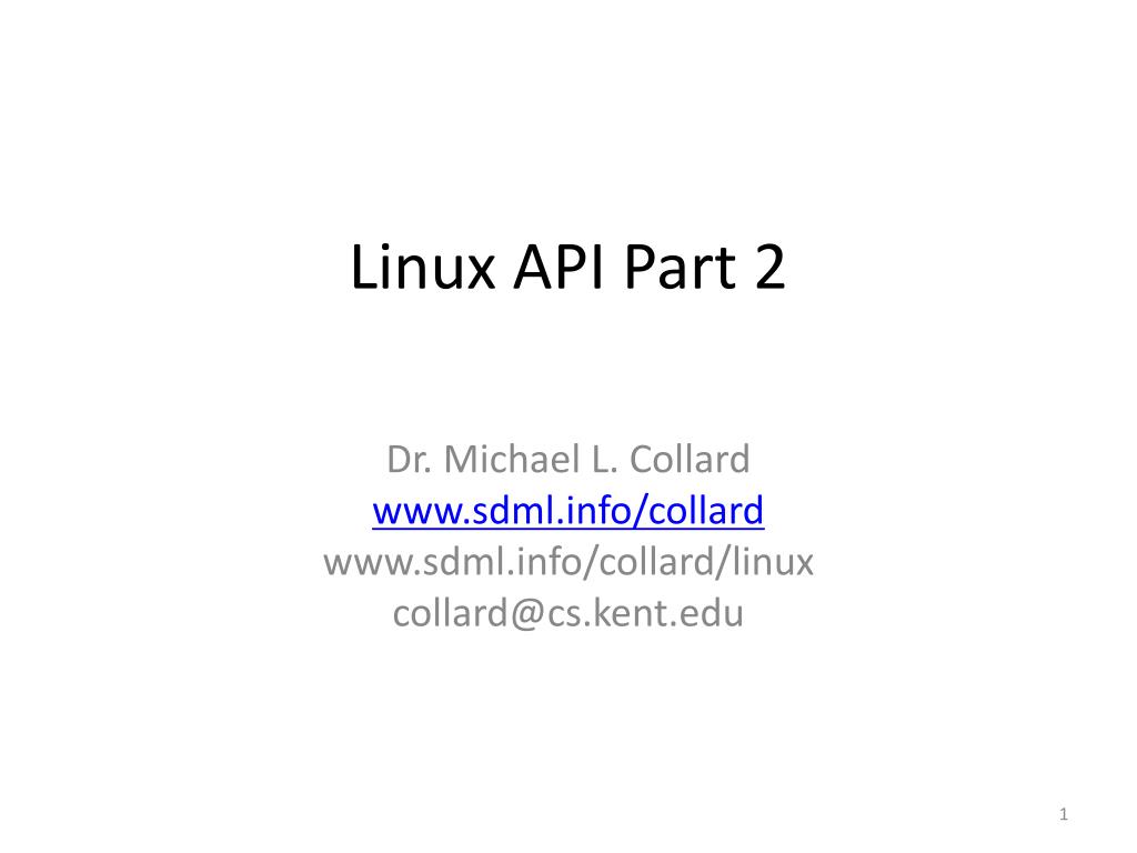 Linux API Part 2 Dr. Michael L. Collard www.sdml.info/collard www.sdml.info/collard/linux collard@cs.kent.edu