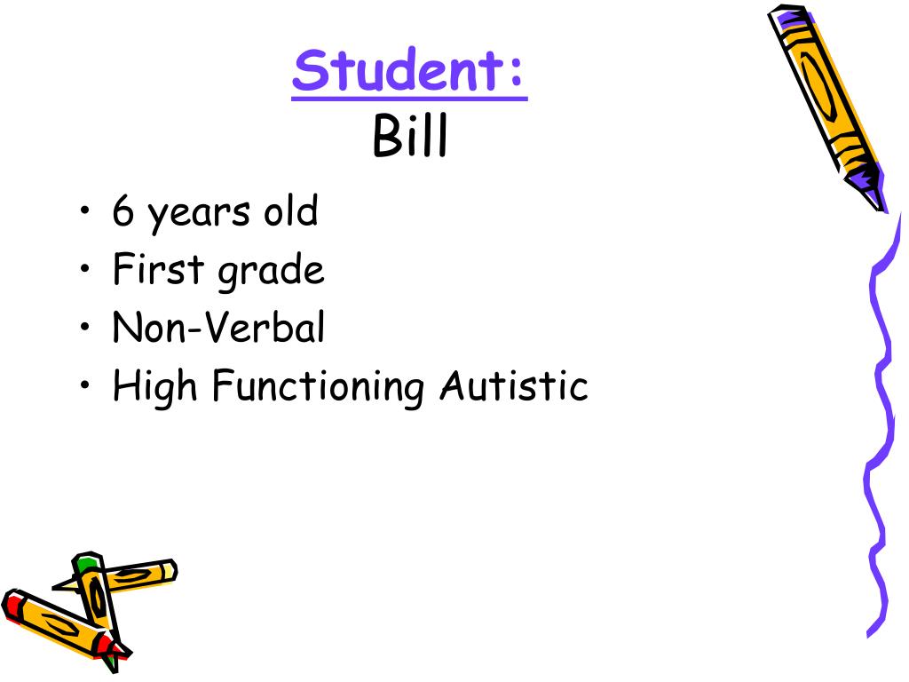 Student:Bill • 6 years old • First grade • Non-Verbal • High Functioning Autistic