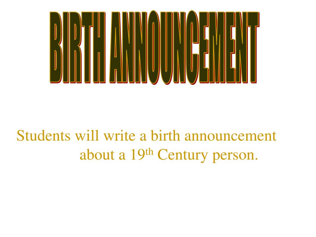 BIRTH ANNOUNCEMENT Students will write a birth announcement about a 19th Century person.