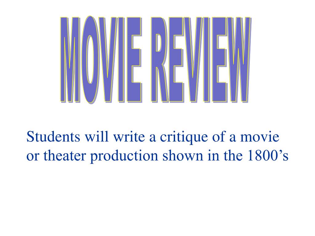 MOVIE REVIEW Students will write a critique of a movie or theater production shown in the 1800’s