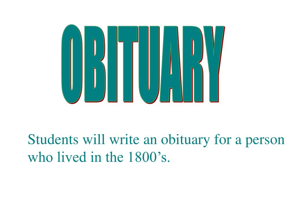 OBITUARY Students will write an obituary for a person who lived in the 1800’s.