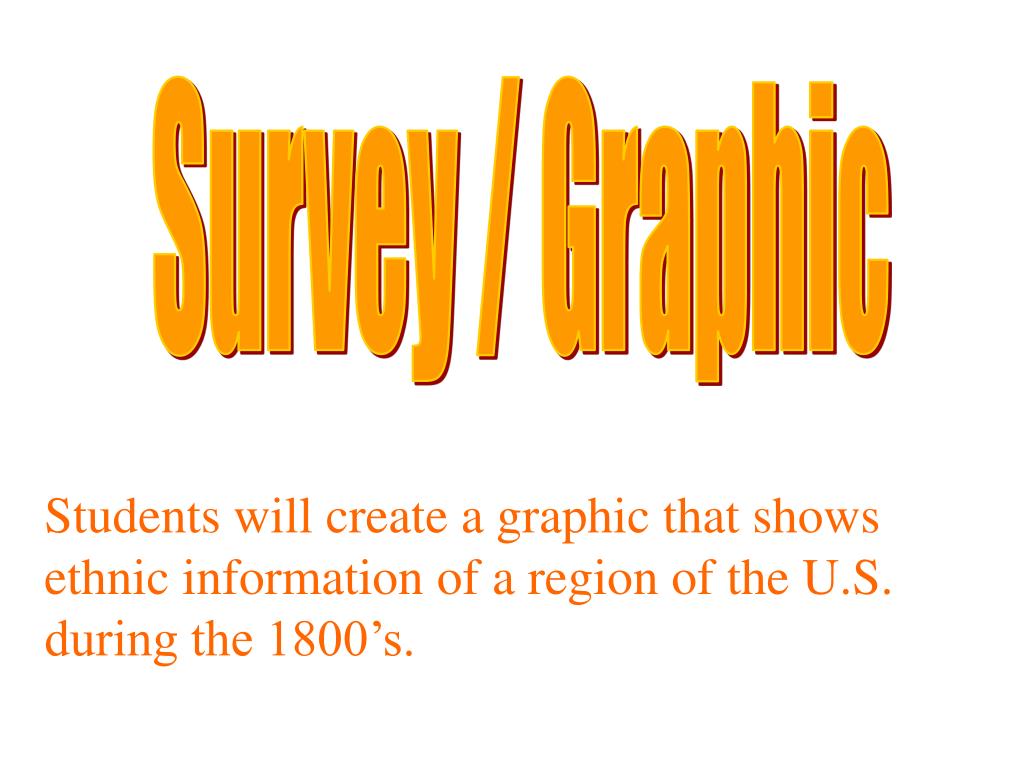 Survey / Graphic Students will create a graphic that shows ethnic information of a region of the U.S. during the 1800’s.