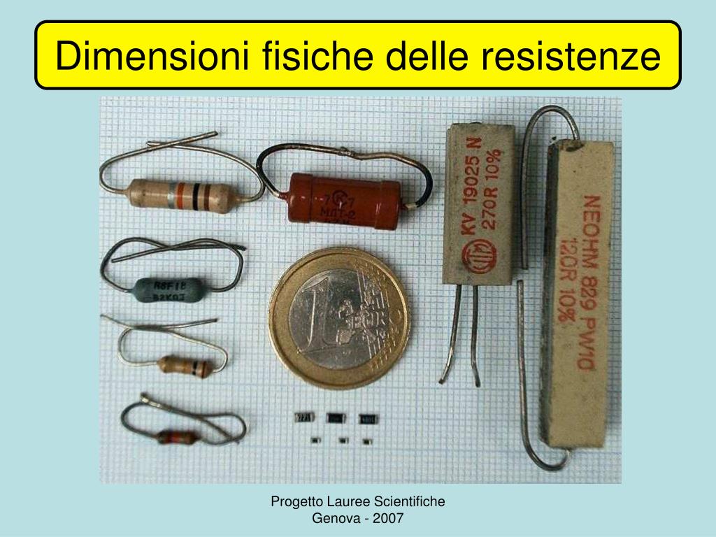 Dimensioni fisiche delle resistenze Progetto Lauree Scientifiche Genova - 2007