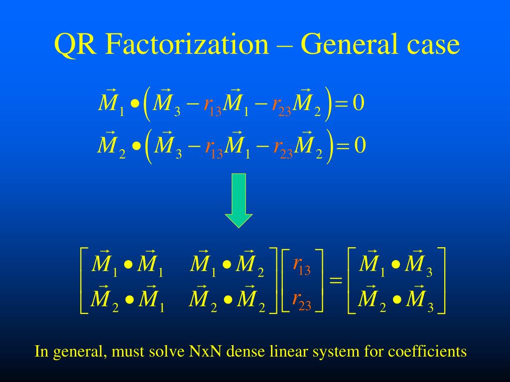 QR Factorization – General case In general, must solve NxN dense linear system for coefficients