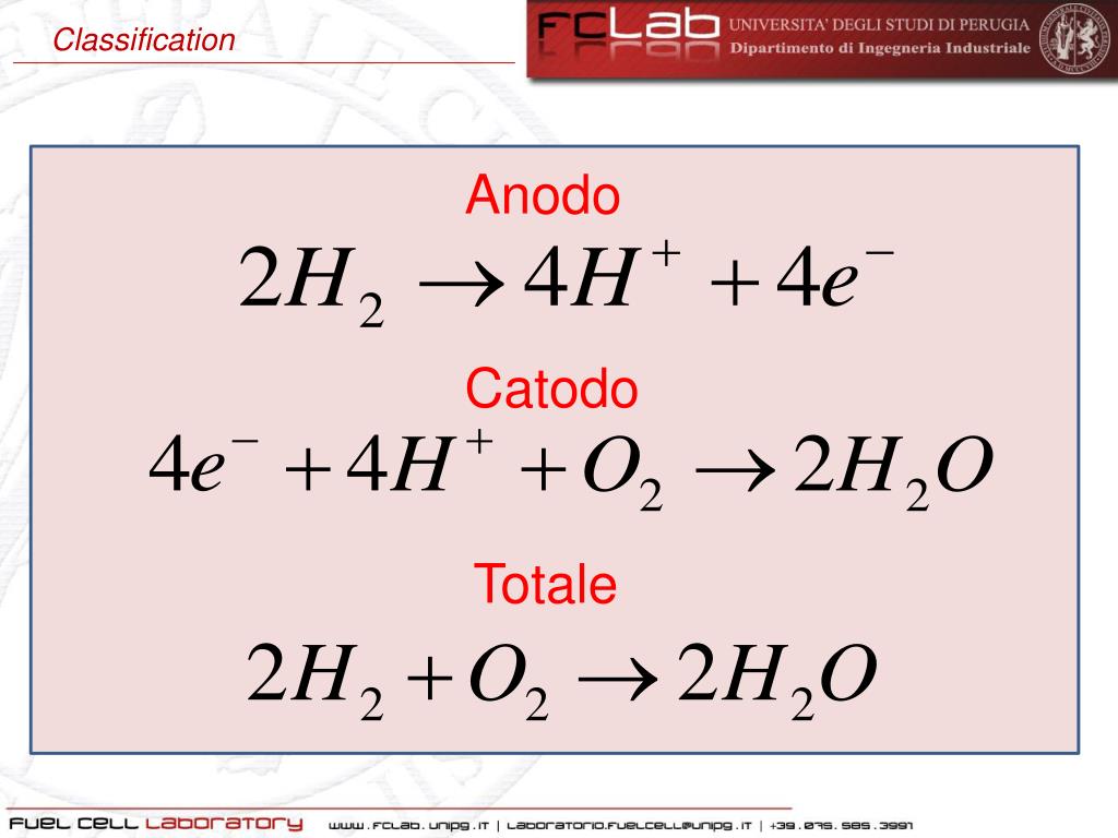 Classification H H Anodo Elettrolita Catodo H2O O