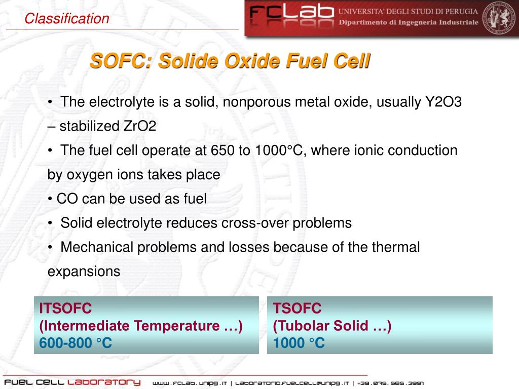 Classification SOFC: Solide Oxide Fuel Cell Anode reaction: Cathode reaction: