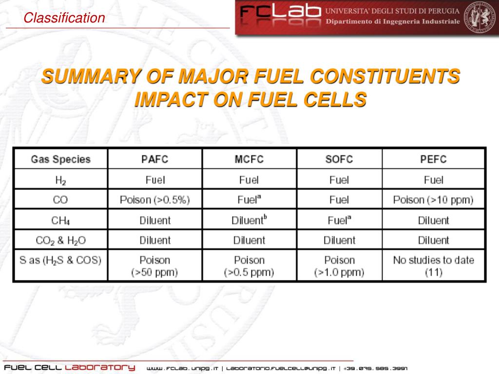 Classification SUMMARY OF MAJOR FUEL CONSTITUENTS IMPACT ON FUEL CELLS