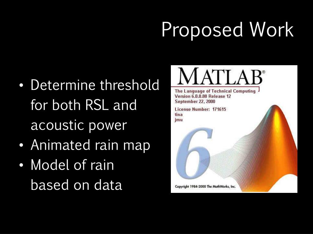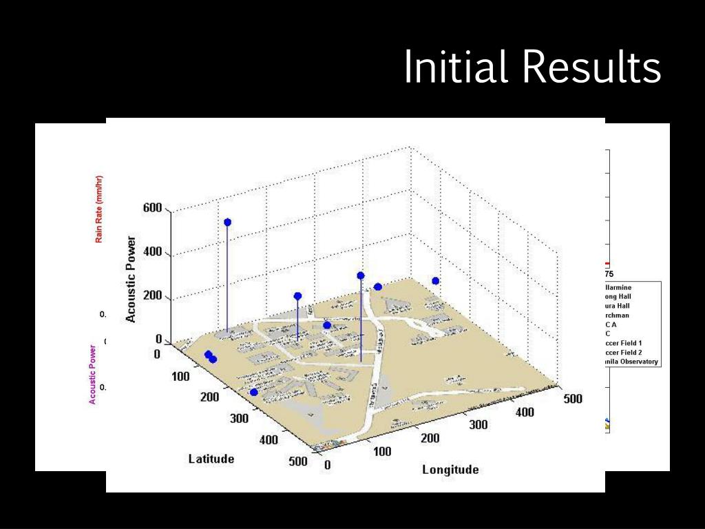 Proposed Work • Determine threshold for both RSL and acoustic power • Animated rain map • Model of rain based on data