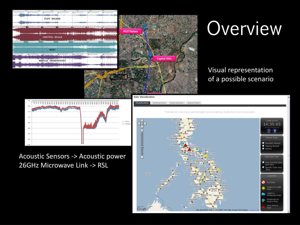 Overview Visual representation of a possible scenario Acoustic Sensors -> Acoustic power 26GHz Microwave Link -> RSL