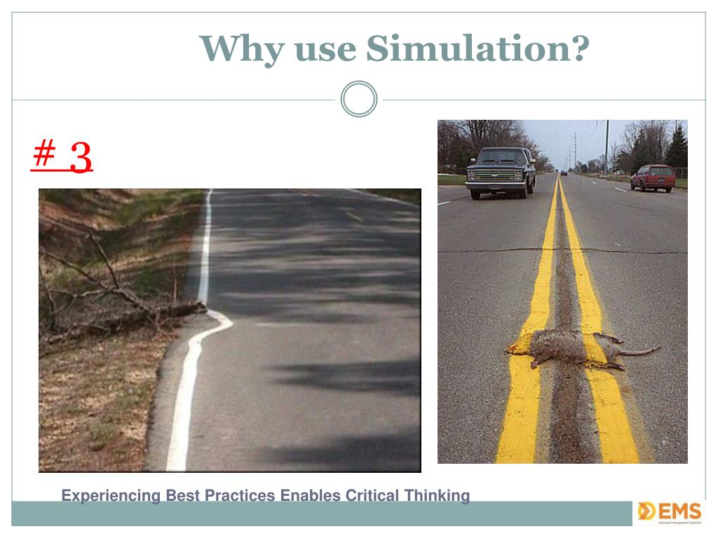 Why use Simulation? # 3 Experiencing Best Practices Enables Critical Thinking