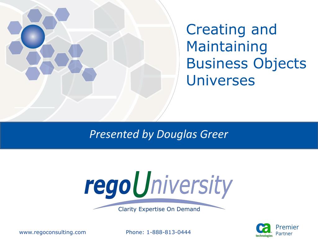 Creating and Maintaining Business Objects Universes Presented by Douglas Greer