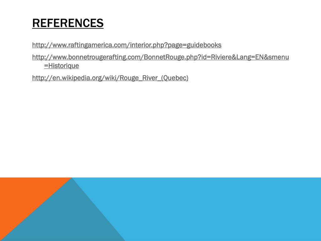 References • http://www.raftingamerica.com/interior.php?page=guidebooks • http://www.bonnetrougerafting.com/BonnetRouge.php?id=Riviere&Lang=EN&smenu=Historique • http://en.wikipedia.org/wiki/Rouge_River_(Quebec)