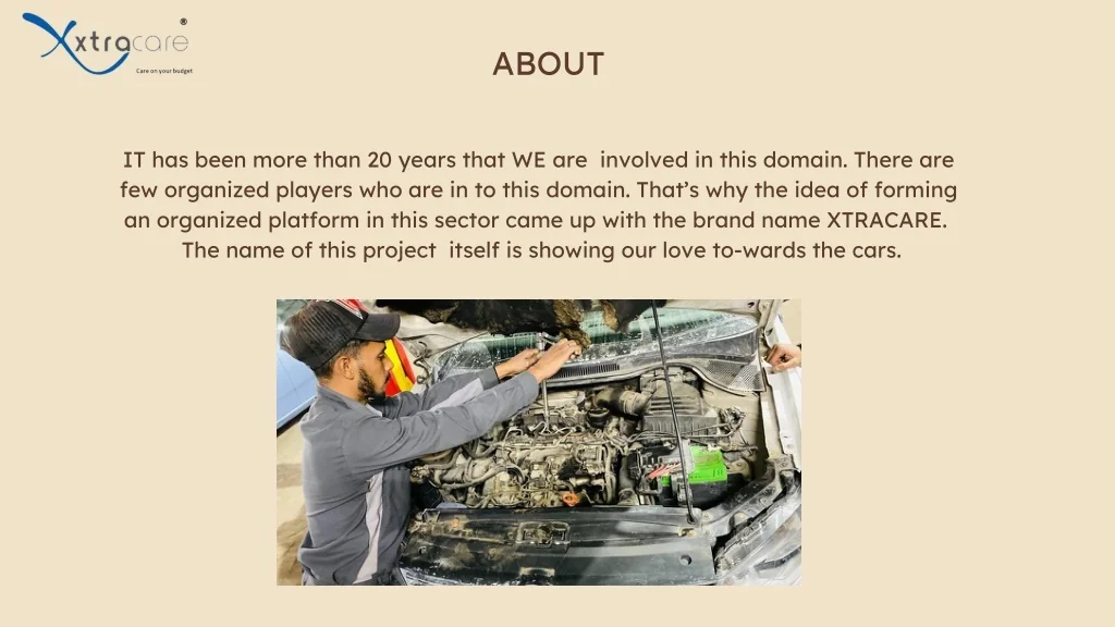 IT has been more than 20 years that WE are involved in this domain. There are few organized players who are into this domain. Thatu2019s why the idea of forming an organized platform in this sector came up with the brand name XTRACARE. The name of this project itself is showing our love to-wards the cars.<br>