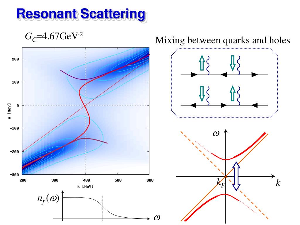 Resonant Scattering GC=4.67GeV-2 Mixing between quarks and holes w kF k nf (w) w