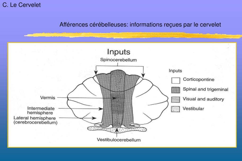 C. Le Cervelet Afférences cérébelleuses: informations reçues par le cervelet