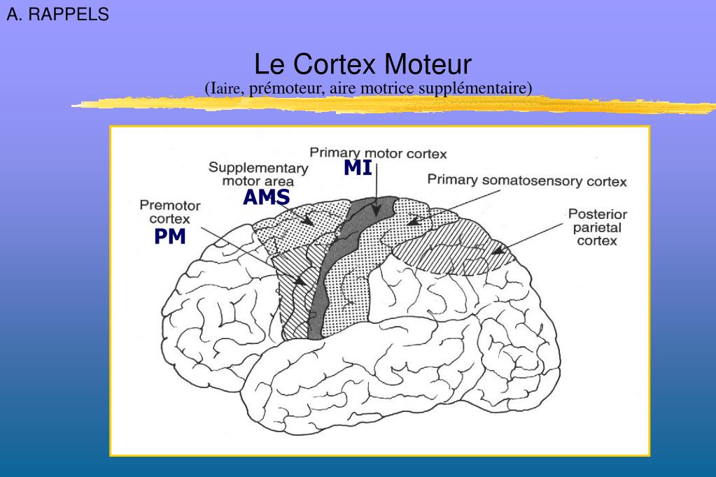 A. RAPPELS Le Cortex Moteur (Iaire, prémoteur, aire motrice supplémentaire) MI AMS PM
