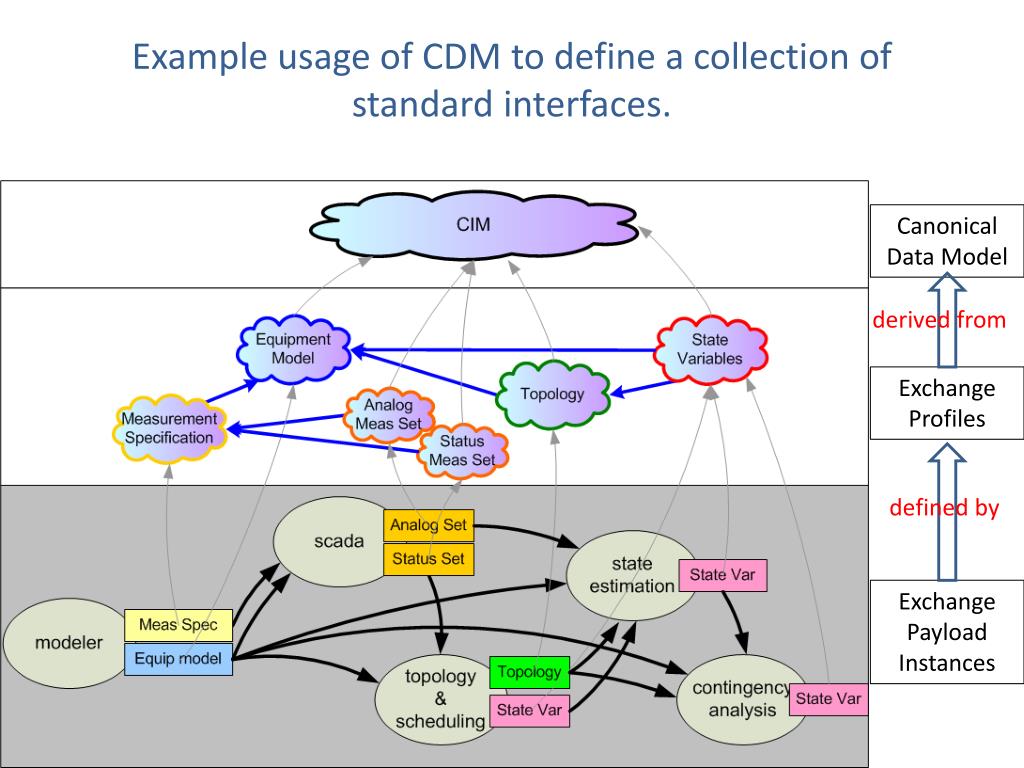 Example usage of CDM to define a collection of standard interfaces. Canonical Data Model derived from Exchange Profiles defined by Exchange Payload Instances
