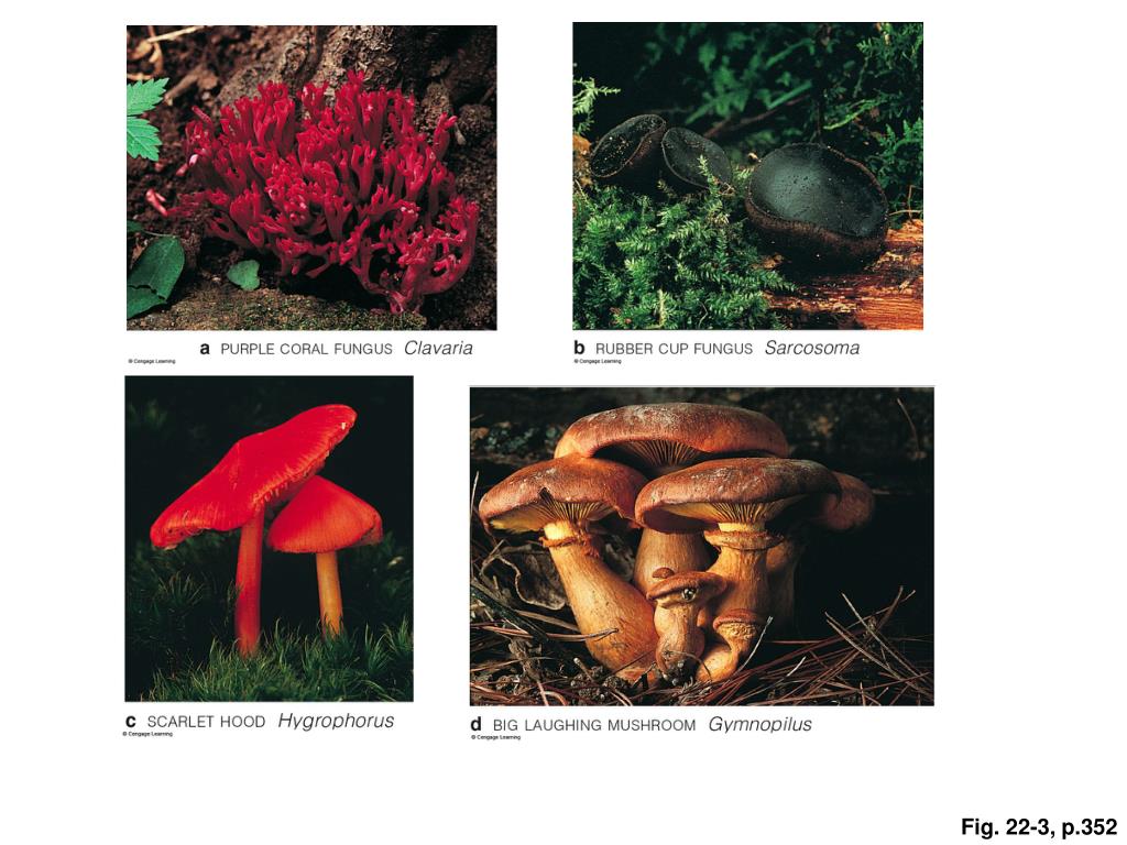 Fig. 22-1, p.350. Fig. 22-1, p.351. zygote fungi. sac fungi. club fungi. chytrids. microsporidians. FUNGI. amoeboid ancestors. Fig. 22-2, p.352. Fig. 22-4, p.353. Fig. 22-5, p.354. Fig. 22-3, p.352. The end club-shaped cell becomes a diploid (2 n ) zygote when its two nuclei fuse.