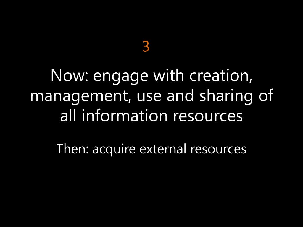 3 Now: engage with creation, management, use and sharing of all information resources Then: acquire external resources