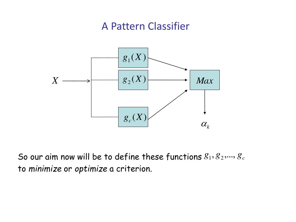 A Pattern Classifier So our aim now will be to define these functions to minimize or optimize a criterion.