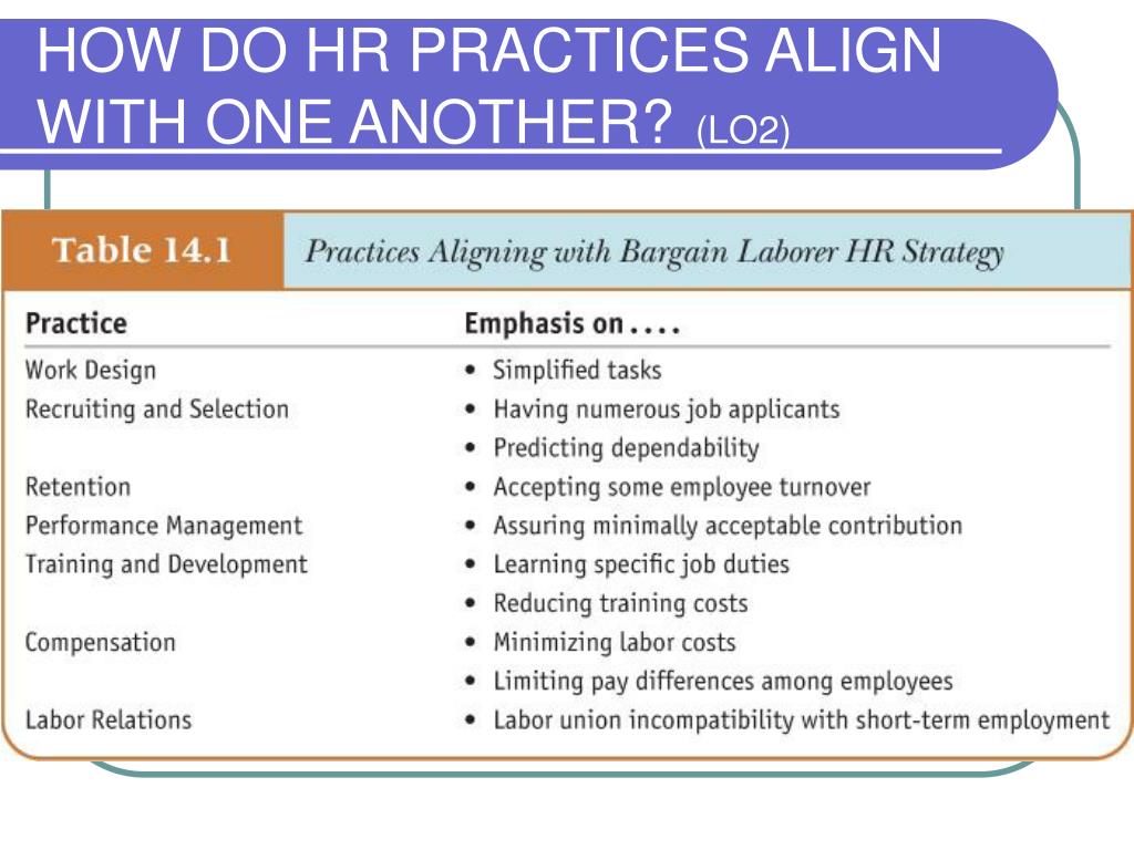 Aligning Strategy with Practice. Chapter 14. Learning Objectives. After reading this chapter you should be able to: Explain the concepts of vertical and horizontal alignment. Identify the specific human resource practices that fit within each of the basic HR strategies.