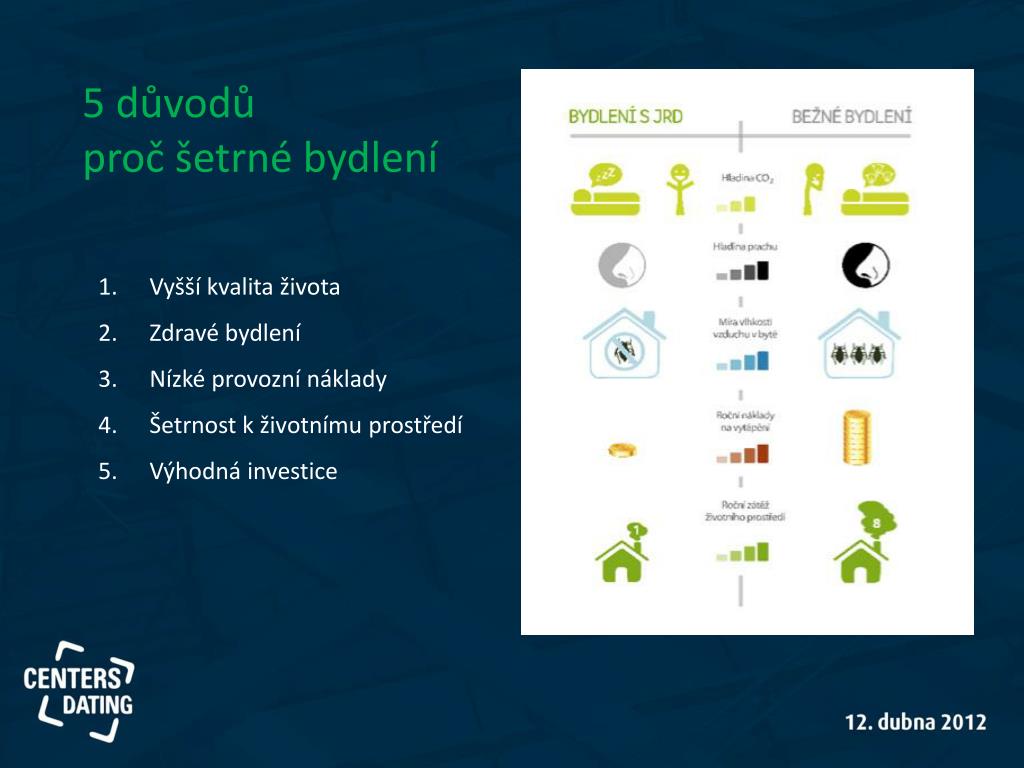 5 důvodů proč šetrné bydlení Vyšší kvalita života Zdravé bydlení Nízké provozní náklady Šetrnost k životnímu prostředí Výhodná investice