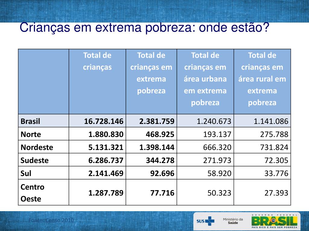 Crianças em extrema pobreza: onde estão? Fonte: Censo 2010