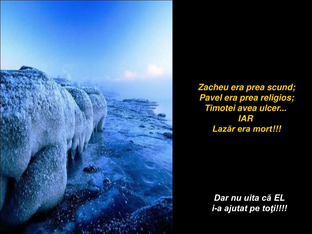 Zacheu era prea scund;Pavel era prea religios;Timotei avea ulcer... IAR Lazăr era mort!!! Dar nu uita că EL i-a ajutat pe toţi!!!!