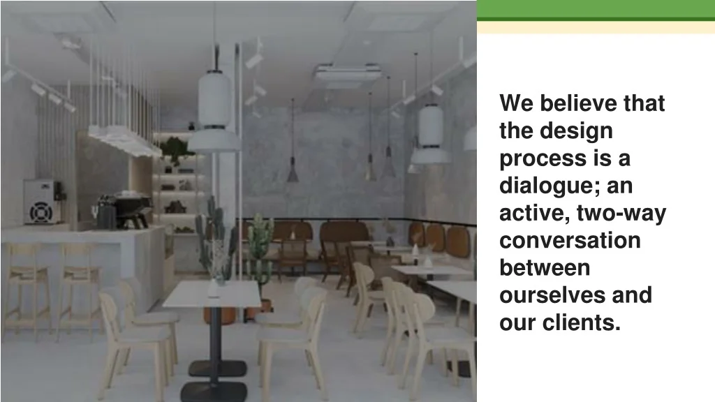 We believe that the design process is a dialogue; an active, two-way conversation between ourselves and our clients.