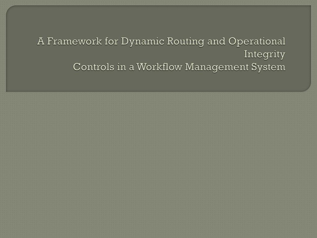 A Framework for Dynamic Routing and Operational IntegrityControls in a Workflow Management System