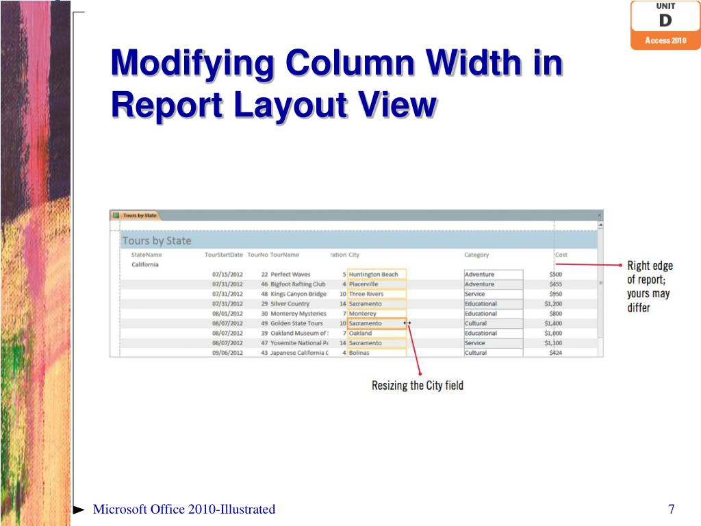 Modifying Column Width in Report Layout View Microsoft Office 2010-Illustrated