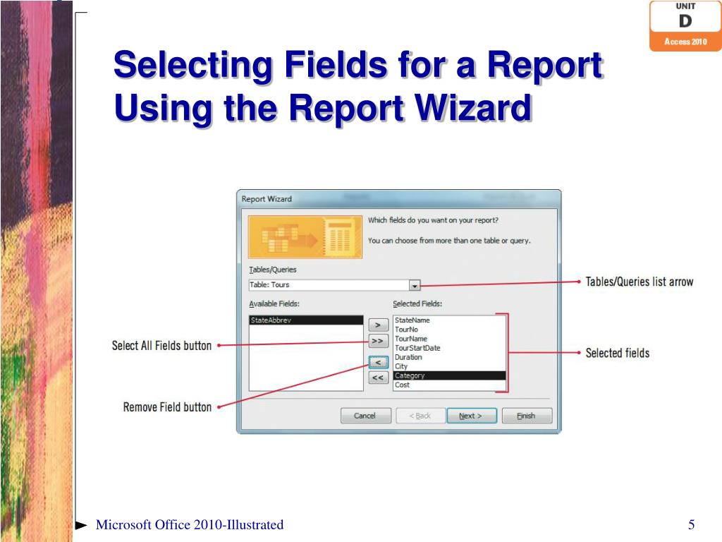 Selecting Fields for a Report Using the Report Wizard Microsoft Office 2010-Illustrated