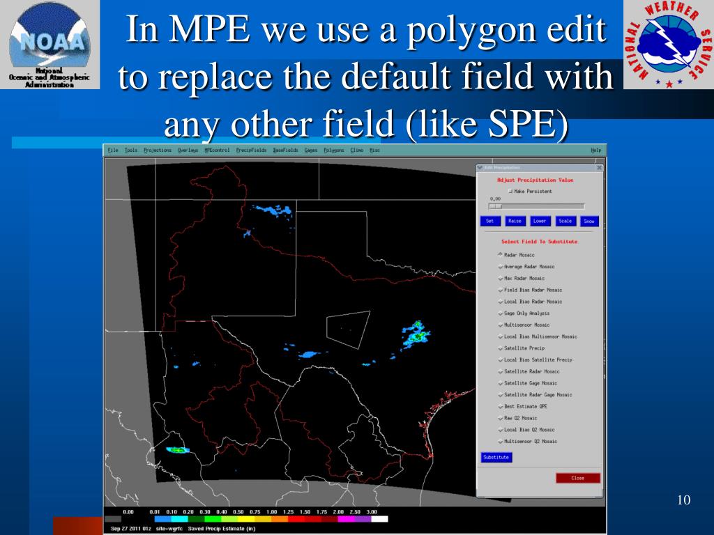 We can insert Satellite QPE using polygons and it becomes our “best estimate field” there