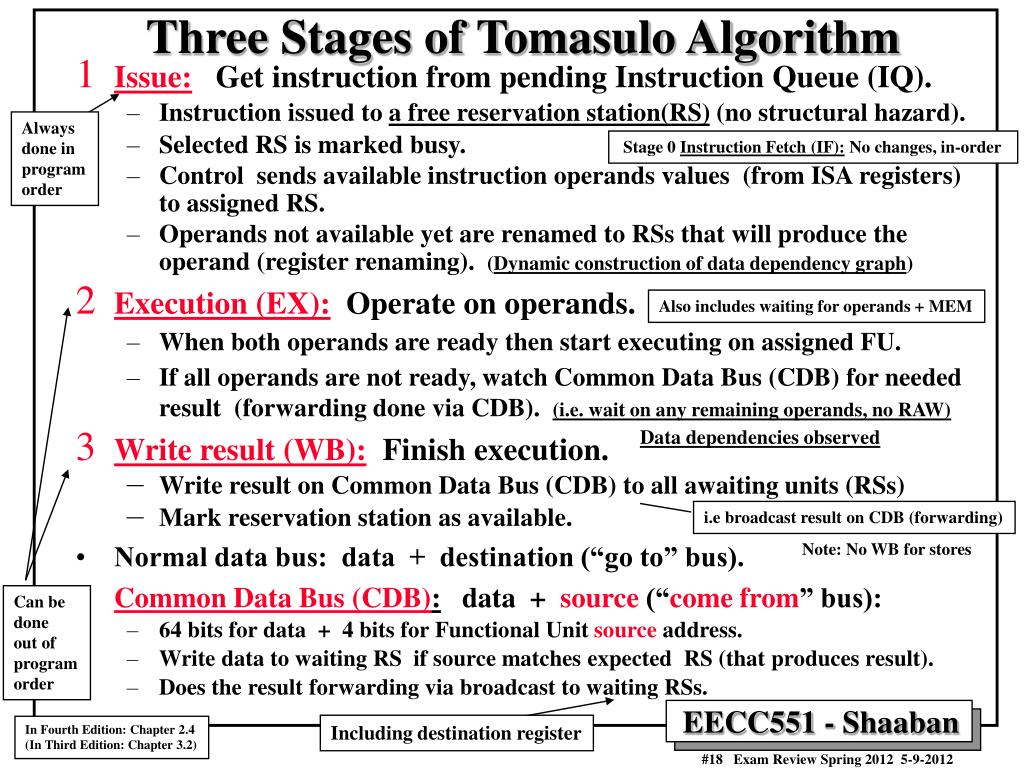 Dynamic Scheduling: The Tomasulo Approach (Instruction Fetch) Instructions to Issue (in program order) (IQ) The basic structure of a MIPS floating-point unit using Tomasulo’s algorithm In Fourth Edition: Chapter 2.4 (In Third Edition: Chapter 3.2) Pipelined FP units are used here