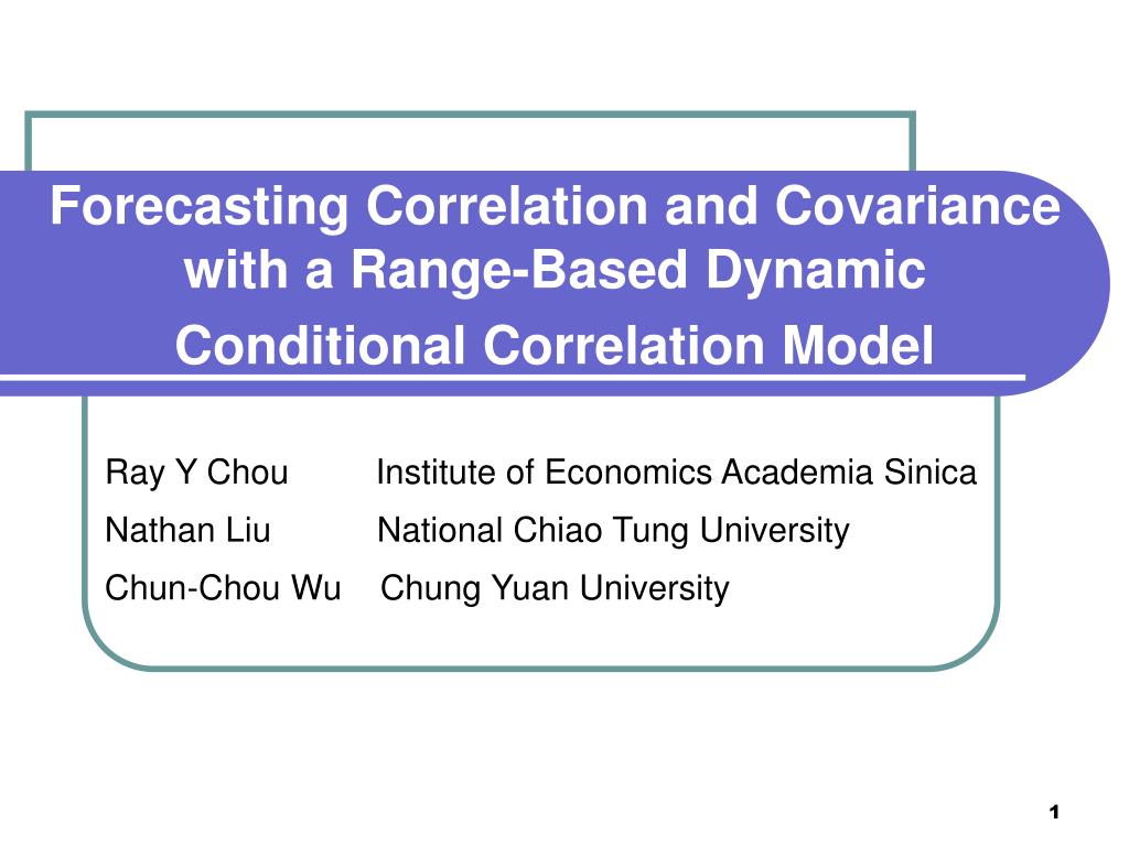 Forecasting Correlation and Covariance with a Range-Based Dynamic Conditional Correlation Model Ray Y Chou Institute of Economics Academia Sinica Nathan Liu National Chiao Tung University Chun-Chou Wu Chung Yuan University