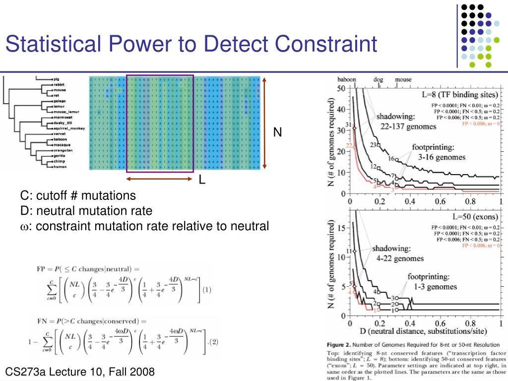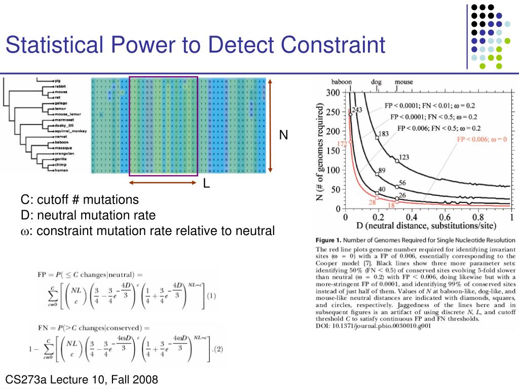 Statistical Power to Detect Constraint N L C: cutoff # mutations D: neutral mutation rate : constraint mutation rate relative to neutral