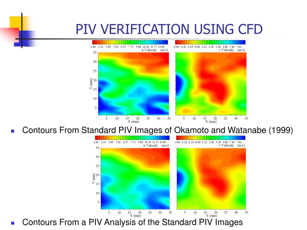 PIV VERIFICATION USING CFD • Contours From Standard PIV Images of Okamoto and Watanabe (1999) • Contours From a PIV Analysis of the Standard PIV Images