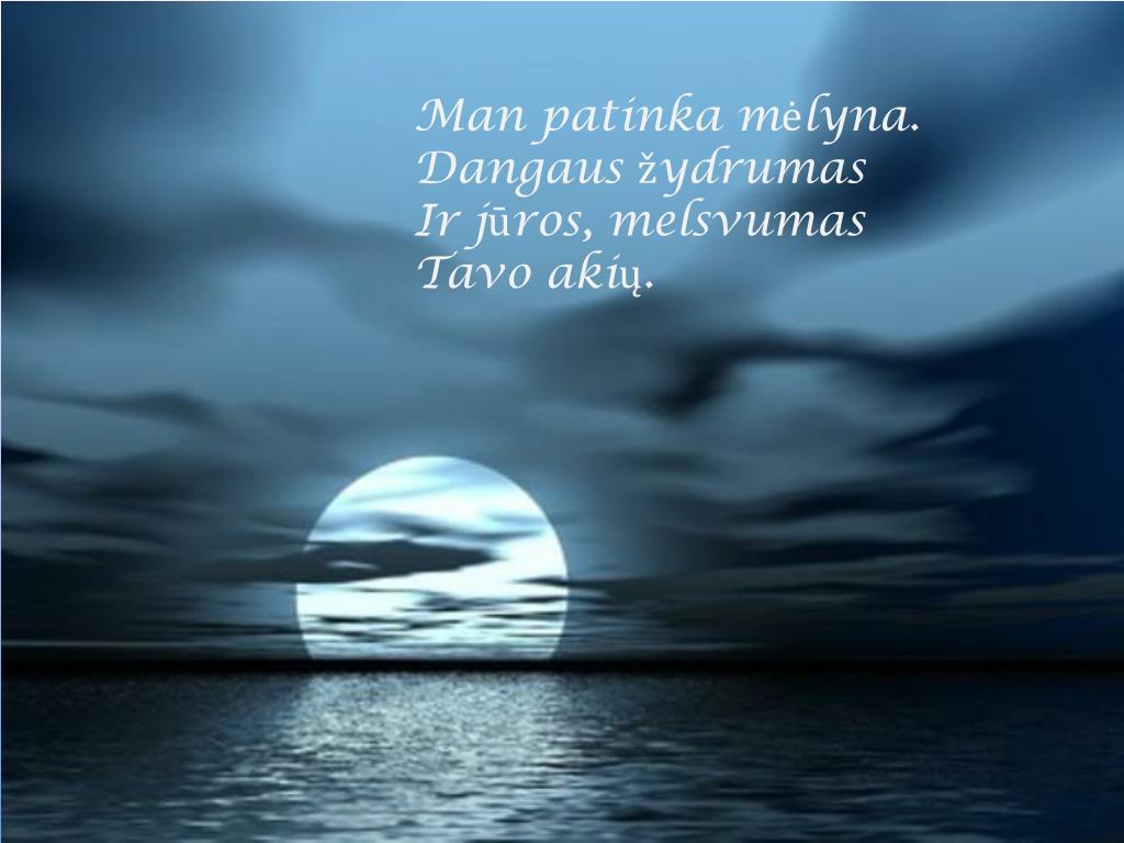 Man patinka mėlyna. Dangaus žydrumas Ir jūros, melsvumas Tavo akių.