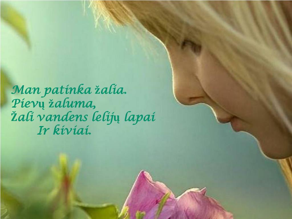 Man patinka žalia. Pievų žaluma, Žali vandens lelijų lapai Ir kiviai.