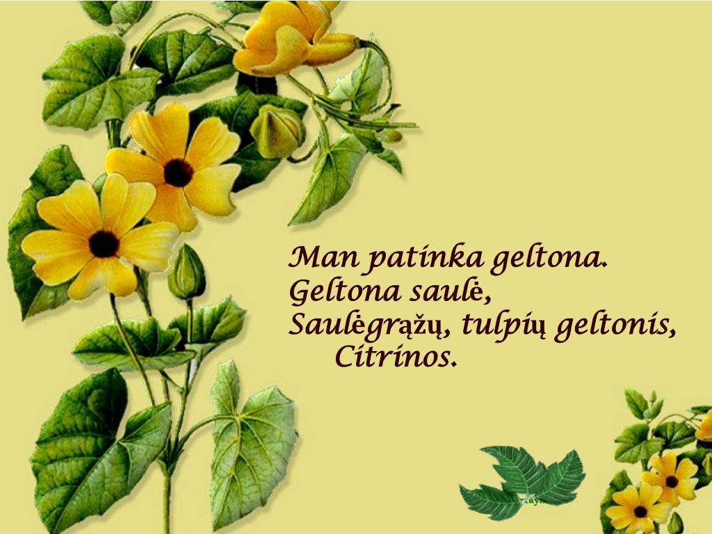 Man patinka geltona. Geltona saulė, Saulėgrąžų, tulpių geltonis, Citrinos.
