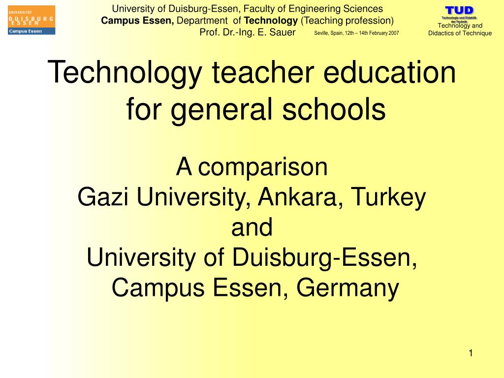 Technology teacher education for general schools A comparison Gazi University, Ankara, Turkey and University of Duisburg-Essen, Campus Essen, Germany