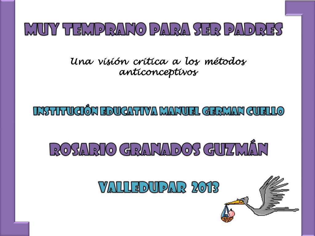 Muy temprano para ser padres Una visión critica a los métodos anticonceptivos Institución educativa Manuel German cuello Rosario granados guzmán Valledupar 2013