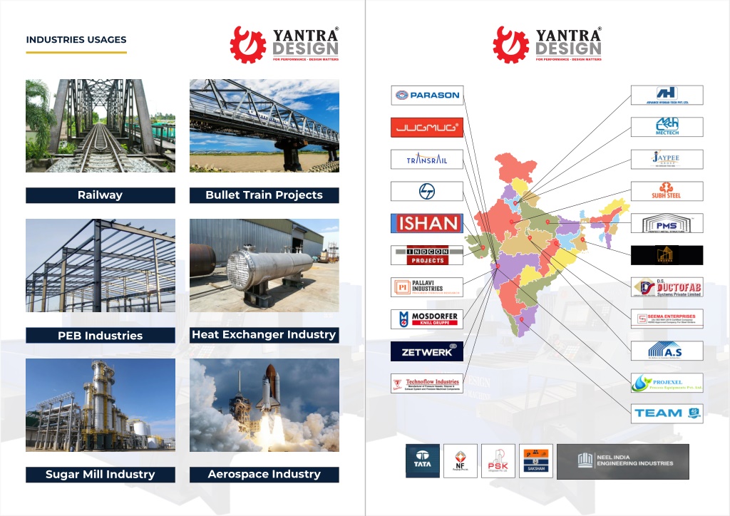 R R INDUSTRIES USAGES FOR PERFORMANCE - DESIGN MATTERS FOR PERFORMANCE - DESIGN MATTERS Railway Bullet Train Projects Heat Exchanger Industry PEB Industries Aerospace Industry Sugar Mill Industry
